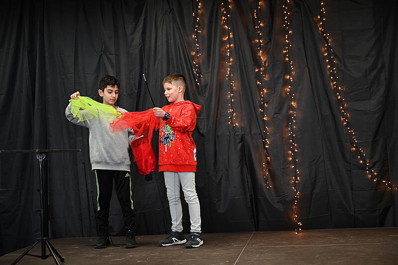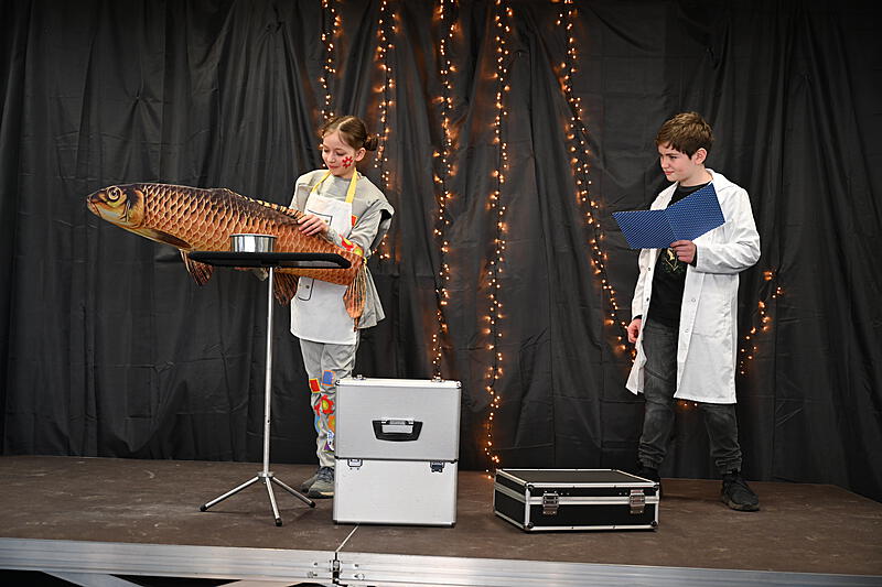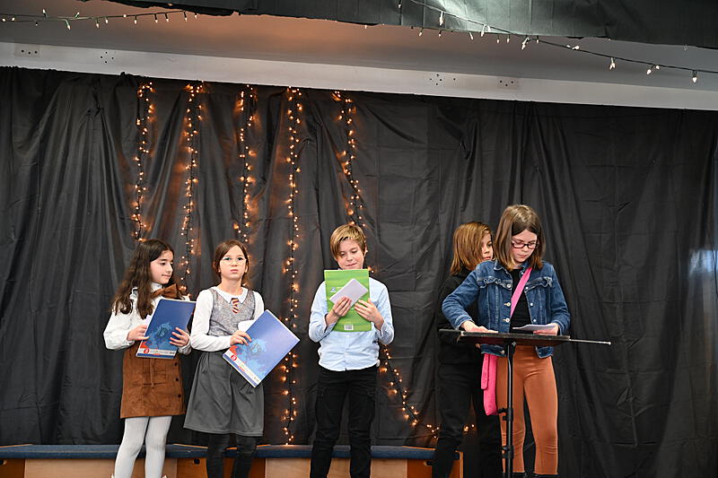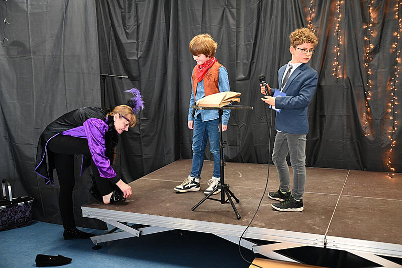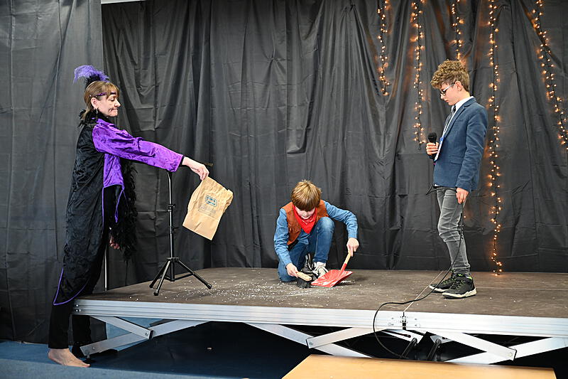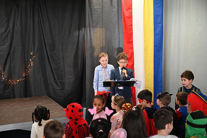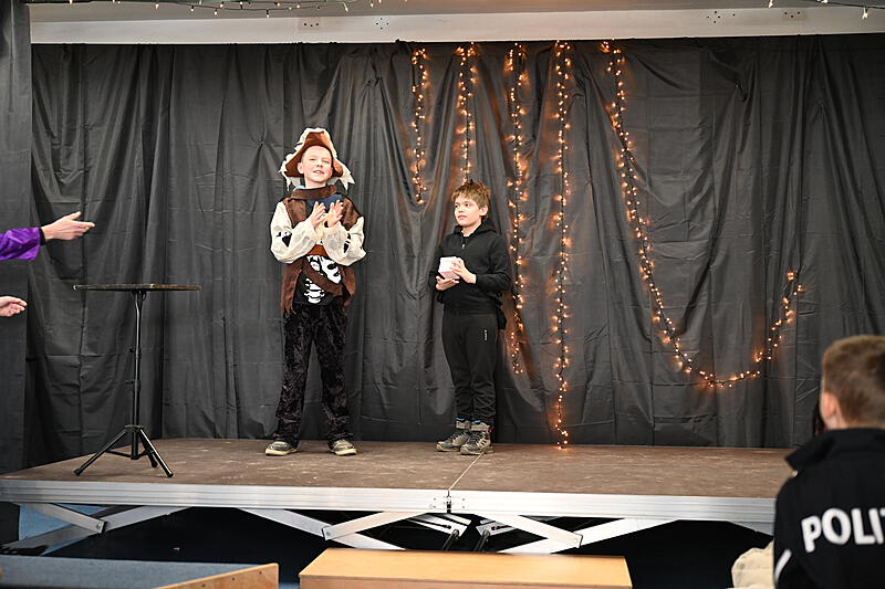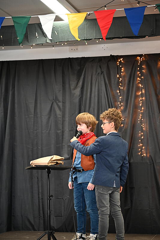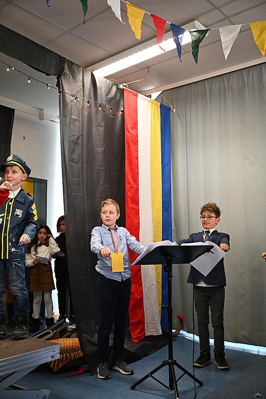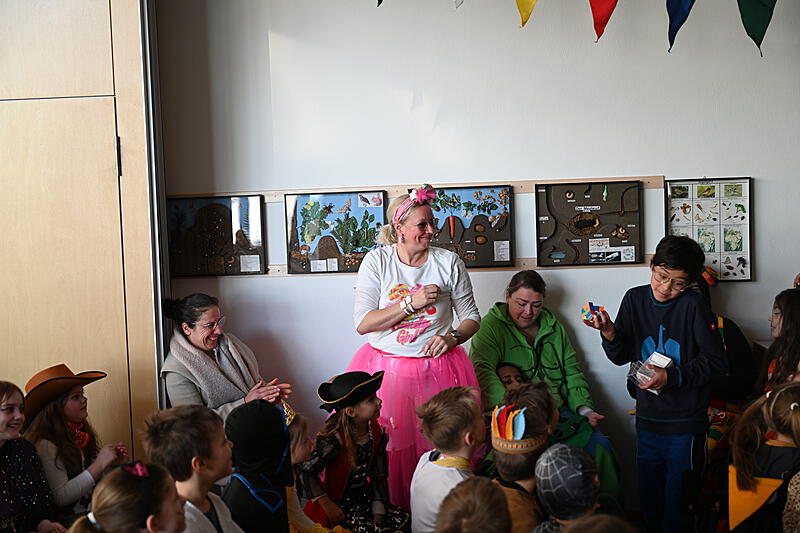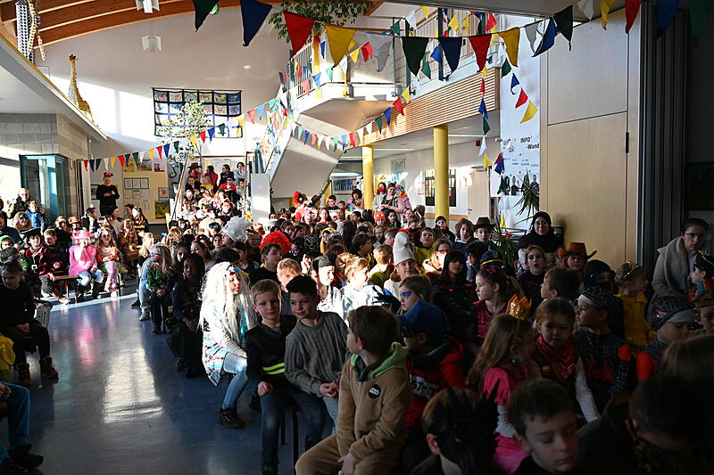 Fastnachtdienstag, am 13.02.2024, wurde in der Schule gefeiert mit dem Besuch des Jugendprinzenpaars und Hofstaat: