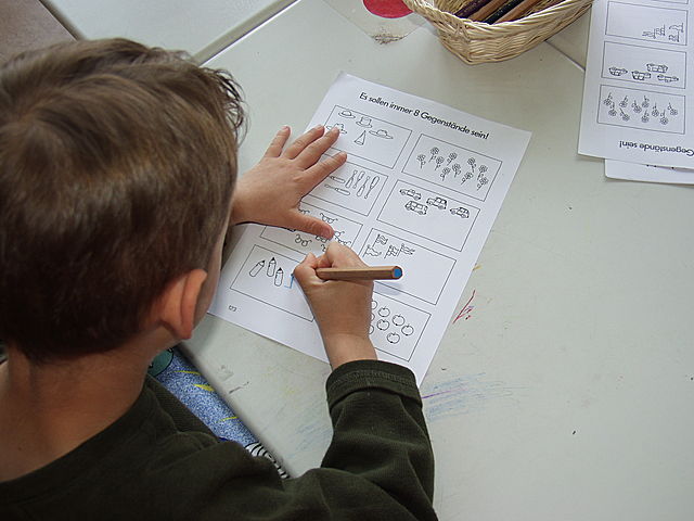 Alle im Unterricht der Klassen 1 bis 4 eingesetzten Arbeitsformen, wie z. B. das Kreisgespräch, die Partnerarbeit, die Stillarbeit werden vorbereitet. Hier einige Arbeitsstationen zur Einführung der Zahl 8: